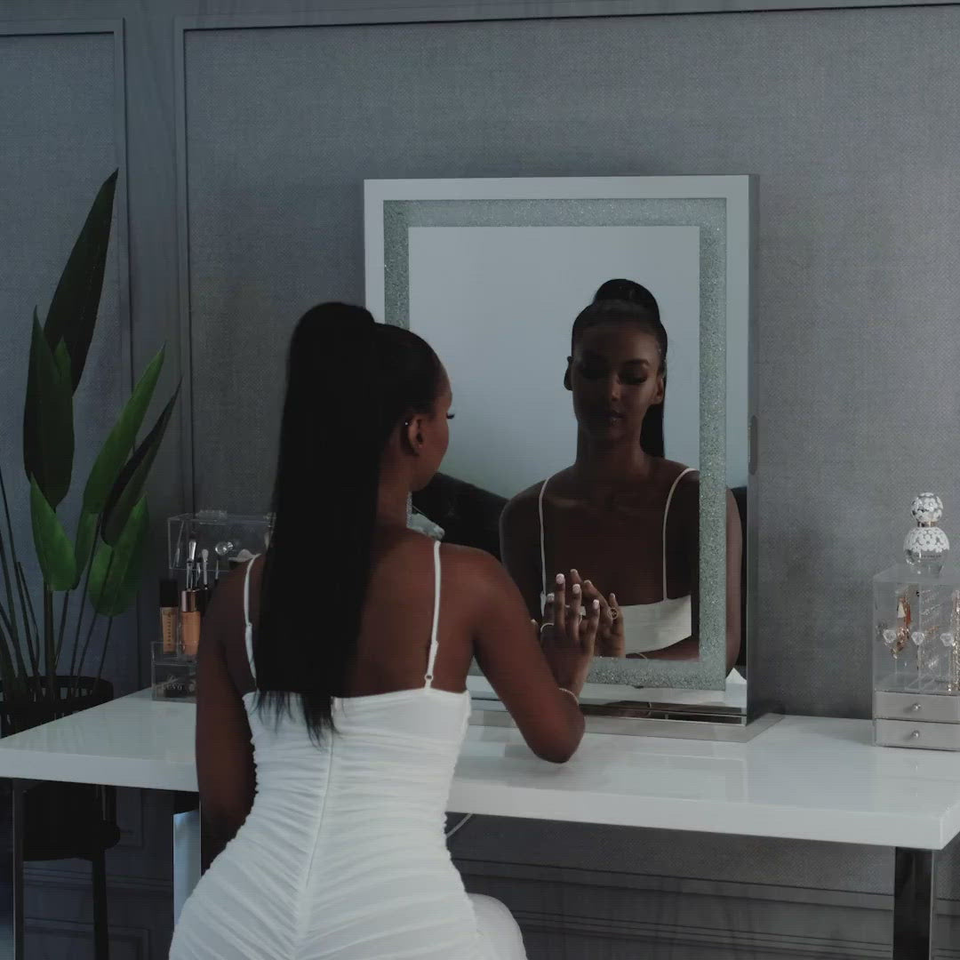 - Ultra Luxe LED Mirror Encased in Stunning Crystals