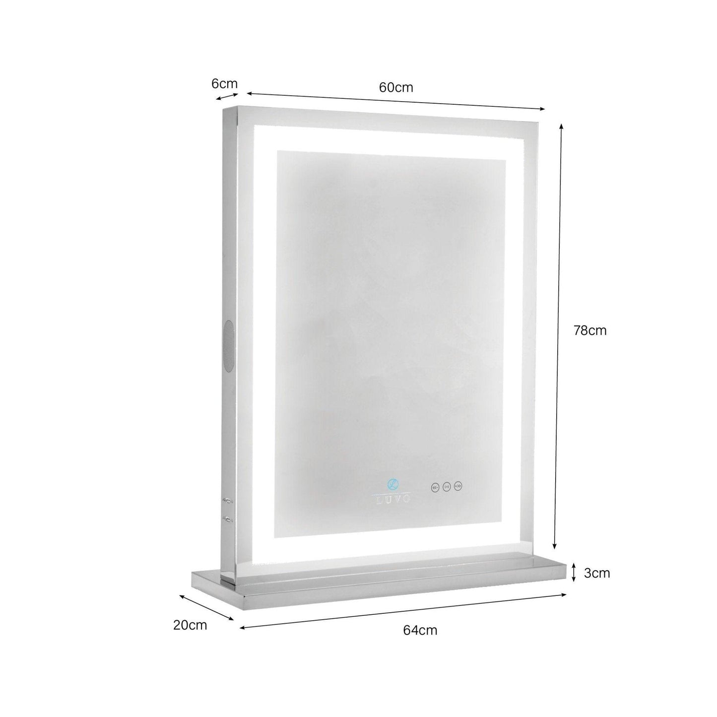 • Measuring at H 78cm x W 60cm x D 6cm (mirror) and H 3cm x W 64cm x D 20cm (base)